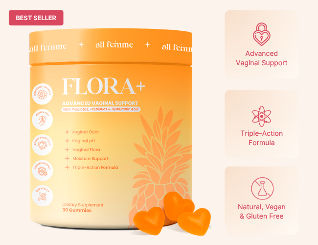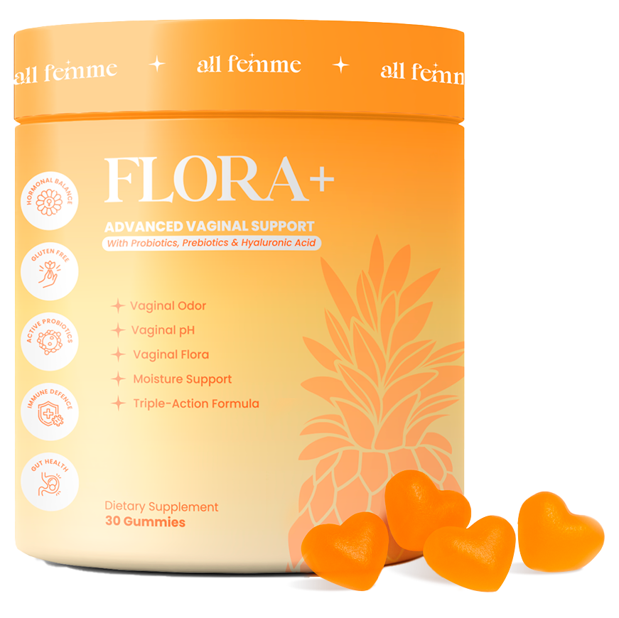 FLORA+ is the only daily gummy that combines probiotics, prebiotics, and hyaluronic acid for complete support — odor, pH, and moisture.