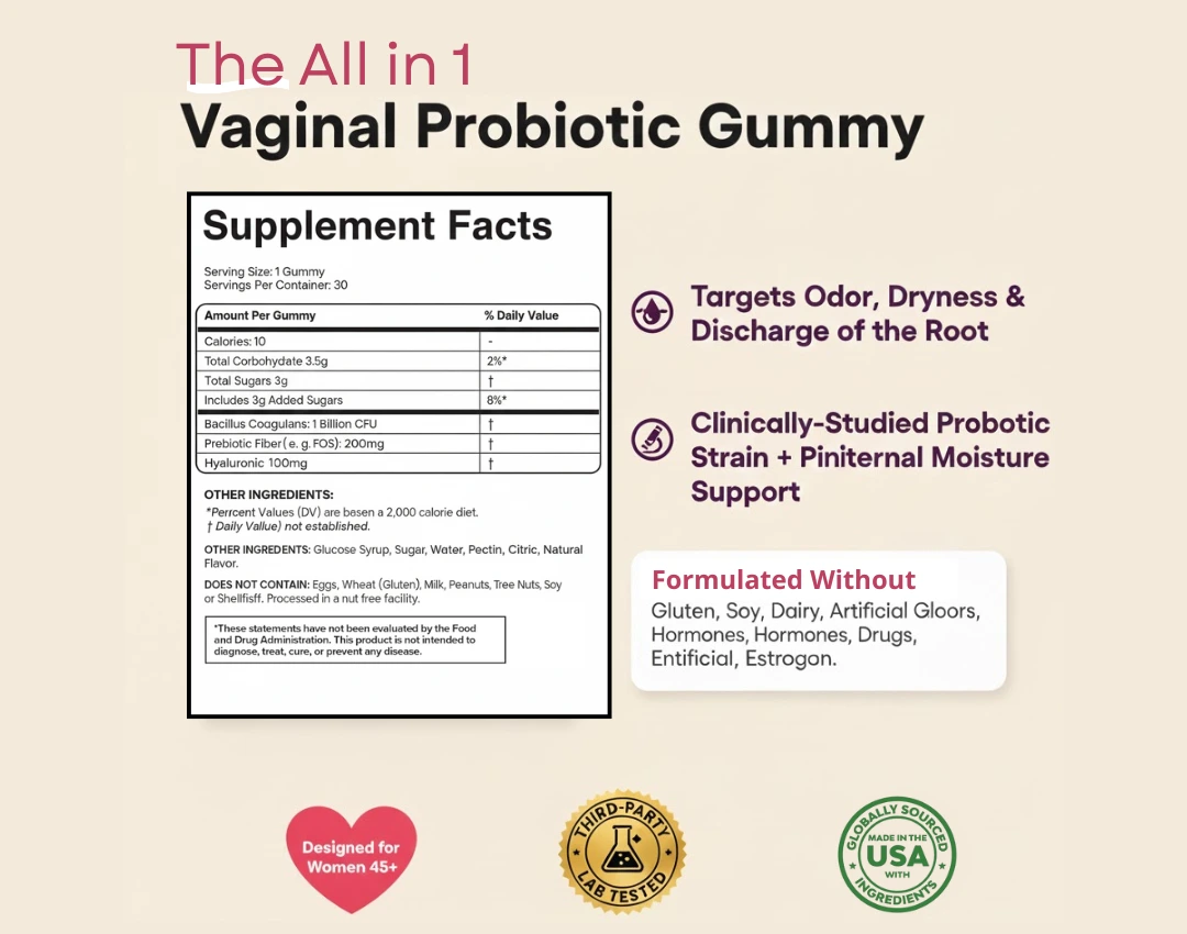 The vaginal microbiome relies on estrogen to stay healthy and balanced. After age 45, during menopause, perimenopause, or after a hysterectomy, estrogen drops sharply and Lactobacilli (your protective good bacteria) declines...